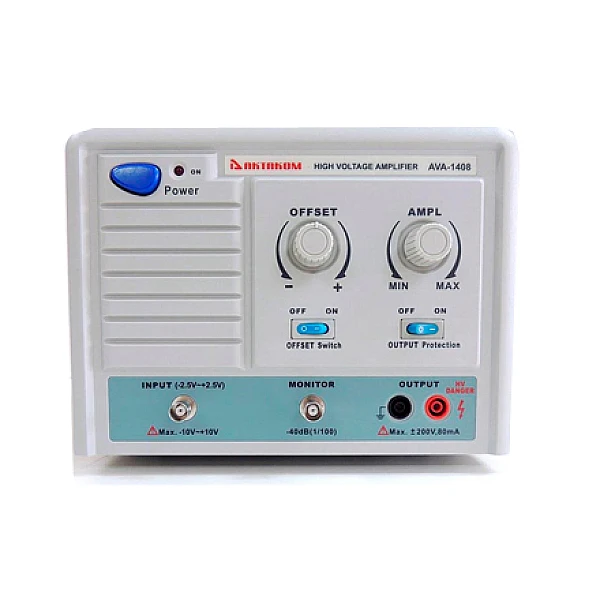 Амплитудные усилители АКТАКОМ AVA-1408 предназначены для усиления амплитуды сигналов в полупроводниковой и высоковольтной инженерии и в других областях. Приборы имеют коэффициент усиления по напряжению от 0 до 180 и снабжены несколькими ступенями защиты по выходу от перегрузки. Амплитуда выходного сигнала регулируется десятиоборотным резистором, что обеспечивает высокую точность управления. Кроме того, предусмотрена возможность установки смещения постоянной составляющей. Для контроля выходных характеристик предусмотрен выход «Monitor» с коэффициентом ослабления 100:1, предназначенный для подключения к осциллографу.