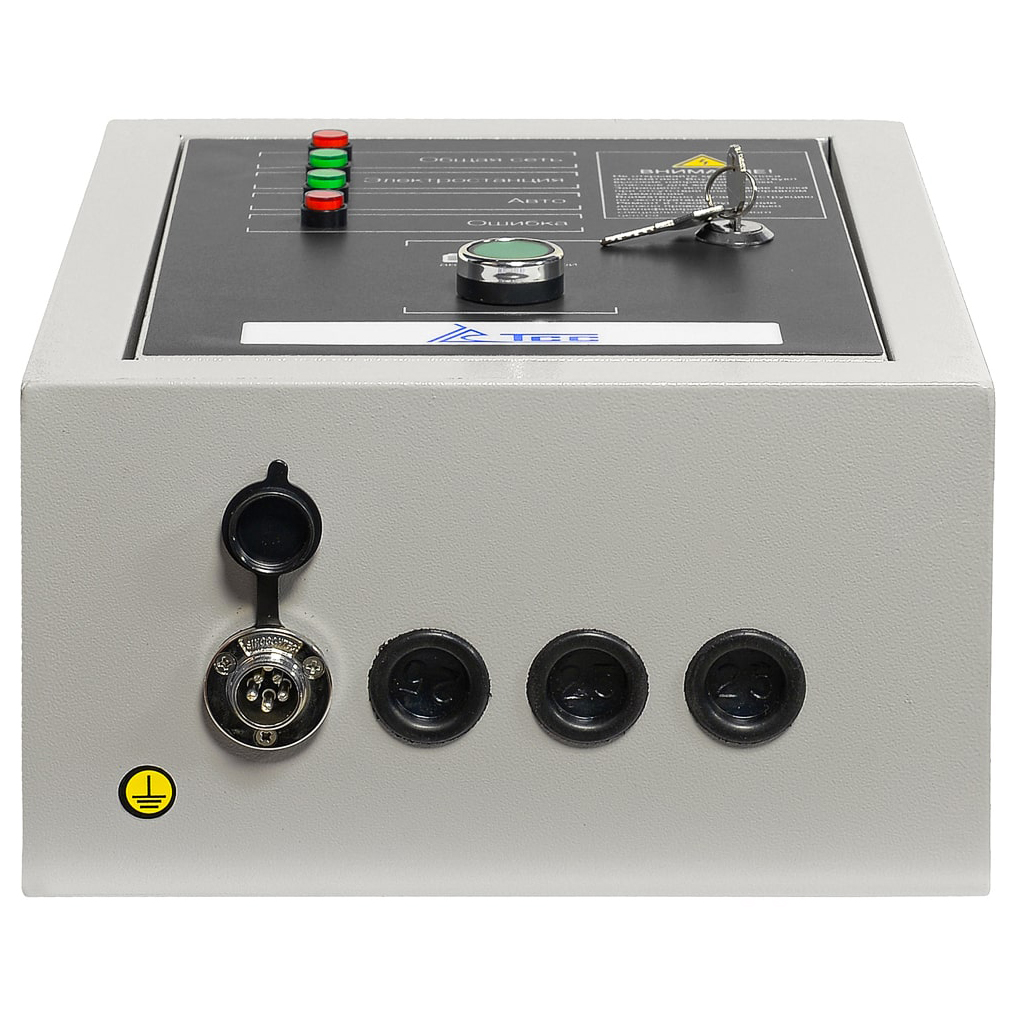 Блок АВР-С TSS 9000D/400 оборудован рядом контрольных ламп, которые наглядно отображают текущий статус и состояние электросети. Отдельный переключатель позволяет выбрать ручной или автоматический режим запуска генератора.