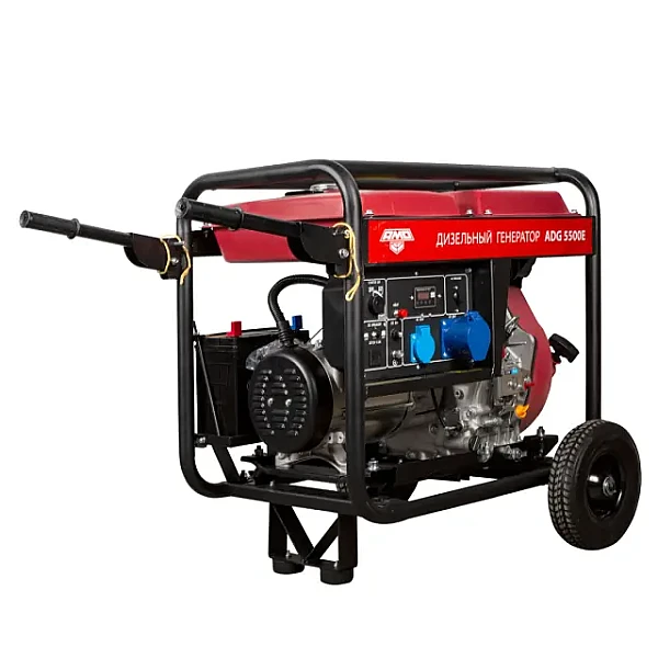 Дизельный генератор AMO ADG 5500E - автономная мобильная электростанция мощностью 5 кВт, которая подходит для выездной работы с однофазными инструментами, а также может закрыть все потребности небольшой мастерской или торгового объекта в электроэнергии. По сравнению с бензиновым, дизельный генератор отличается экономичностью и больше ориентирован на длительную непрерывную эксплуатацию.