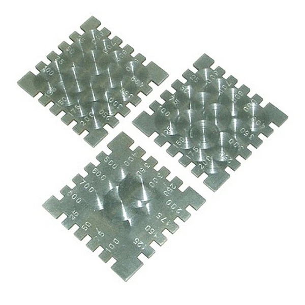 Высокоточная Измерительная гребенка из нержавещей стали (или калиброванный гребень) предназначена для измерения толщины жидких, не затвердевших лакокрасочных материалов и покрытий на плоских и цилиндрических изделиях в соответствии со стандартом ГОСТ Р 51694, ИСО 2808. Материалы лакокрасочные. Измерение толщины покрытий.