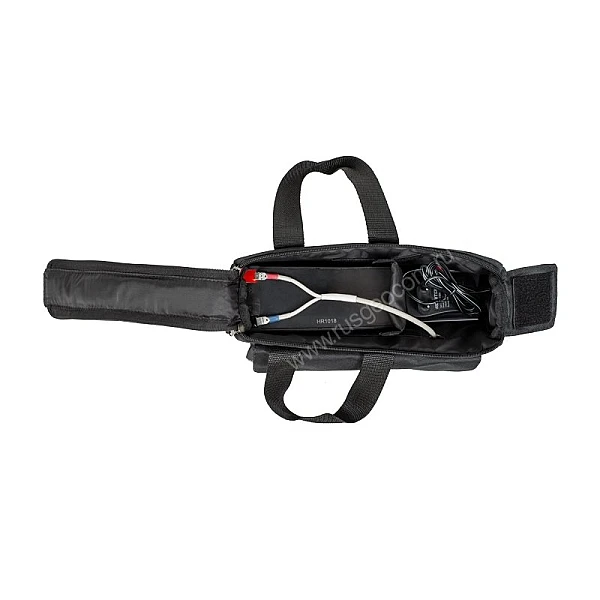 Устройство поставляется в комплекте с сумкой из непромокаемого материала. Благодаря этому, вы можете поставить комплект питания на мокрую траву, закрепить на штатив или использовать при повышенной влажности воздуха. Также, предусмотрены боковые карманы, в которые поместятся необходимые кабели, переходники и другие аксессуары.