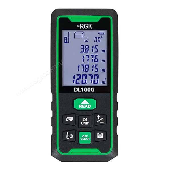 Купить Лазерный дальномер RGK DL100G - зеленый луч в Хабаровске легко — просто позвоните по телефону: 8-800-551-11-01