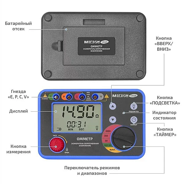 Купить Омметр (измеритель сопротивления заземления) МЕГЕОН 13020 в Хабаровске легко — просто позвоните по телефону: 8-800-551-11-01