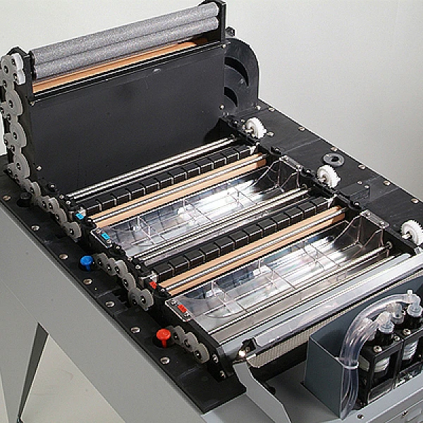 Между циклами проявки и фиксирования производится ополаскивание пленки. Обновление растворов производится по данным сенсоров, измеряющих длину и ширину входящего материала. Специальная конструкция предотвращает контакт растворов с воздухом. Все эти меры позволяют экономить растворы и сокращают габариты и вес прибора.