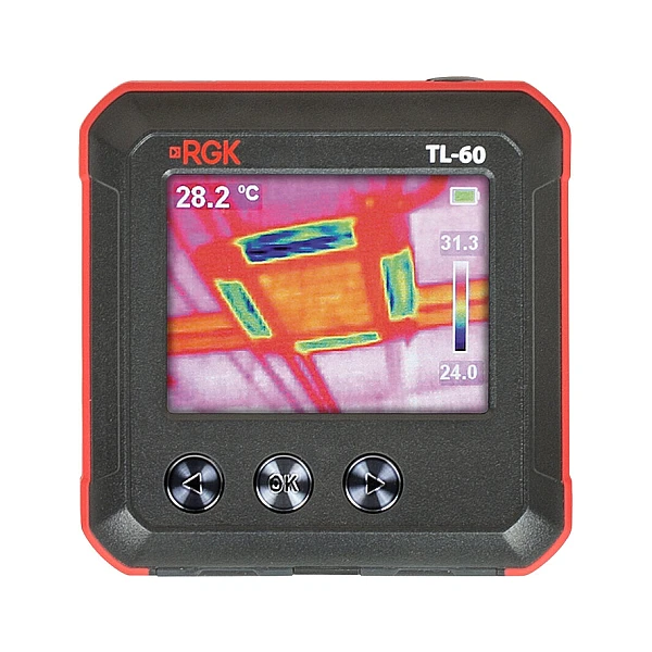 Портативный тепловизор RGK TL-60 можно настроить так, чтобы прибор оповещал специалиста о выходе текущих значений температуры за установленный порог, что значительно упрощает проведение инспекций. Сохраненные снимки можно просматривать как на ПК, так и на самом тепловизоре, благодаря чему упрощается сравнительный анализ. Ручной ввод поправок на коэффициент излучения помогает минимизировать погрешность измерения при работе с отражающими поверхностями, такими как хром или полированный металл.